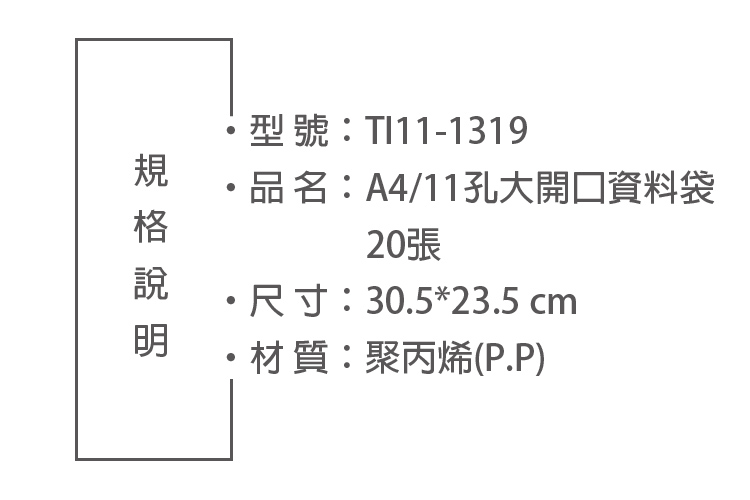 A4/11孔大開口資料袋20張 TI11-1319