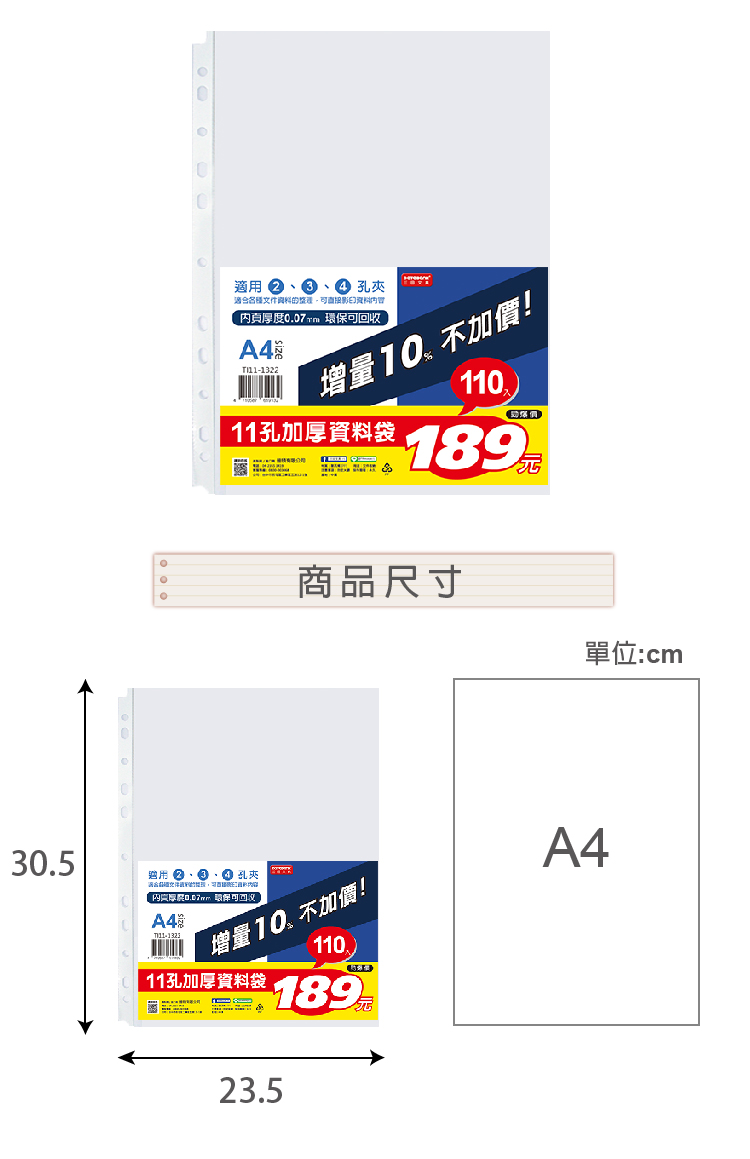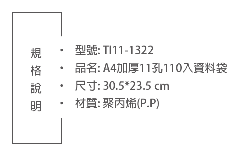 A4 11孔加厚110入資料袋-厚度0.07mm (TI11-1322)